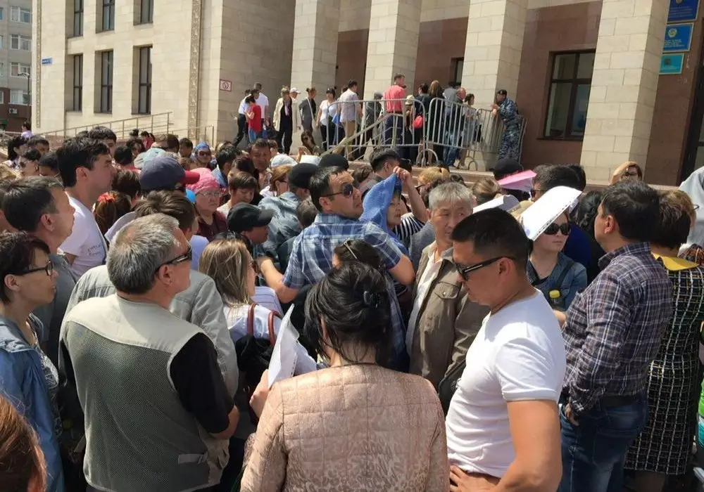 Из-за большого количества желающих подать заявление возле акимата выставили ограждение.