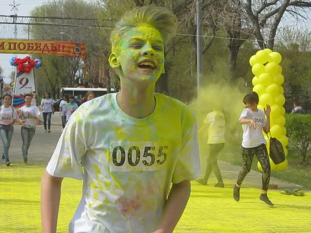 Старт был дан от областного драматического театра имени Погодина. Для участников координаторы организовали 4 дистанции, где на каждом отрезке ребят обкидывали краской. Так, на первом этапе бегунов обсыпали синей краской, на втором - красной, на третьем - зеленой и на четвертом - желтой. Точкой красочного забега был городской парк. Здесь ребята не только стали массово бросаться краской, но и обливаться водой.