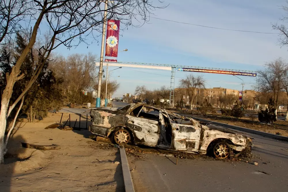 Жителям Жанаозена компенсируют сожженные автомобили Жанаозен после беспорядков. Фото Максим Попов©