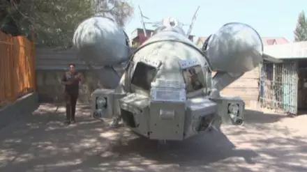 На новое творение Куаныша приехали посмотреть журналисты телеканала "Хабар 24". Как отмечает корреспондент, звездолет можно назвать самой масштабной работой талгарского умельца. На его сборку у мастера ушло почти полгода. Материалом послужили восемь стиральных машин, четыре телевизора, три газовые плиты, один холодильник и детали от настоящего самолета.
