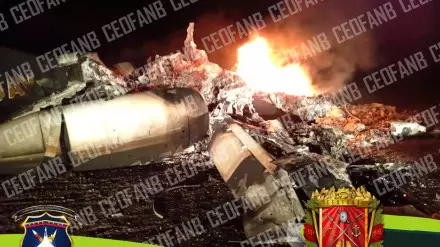 Сообщение сопровождают снимки горящего сбитого судна, на киле которого хорошо сохранен номер N339AV.