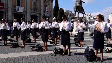 Участницы флешмоба протестуют против условий, в которых оказались их коллеги после ликвидации Alitalia.