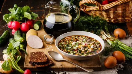 Еще один небольшой совет от диетологов: окрошка или суп на овощном бульоне хорошо насыщают, перевариваются быстро и пополняют запас жидкости в организме (от колбасы лучше воздержаться).