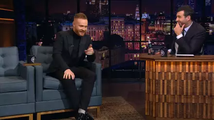 Начинал с шуток про Бората - казахстанский комик Чебатков в "Вечернем Урганте" Стоп-кадр выпуска передачи "Вечерний Ургант"