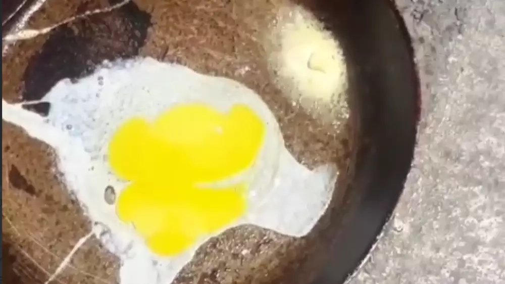 В Сети появилось видео, снятое на одной из местных трасс. Его авторы поставили сковороду на асфальт и, как сами они говорят в ролике, через 10 минут приступили к жарке на ней яичницы.