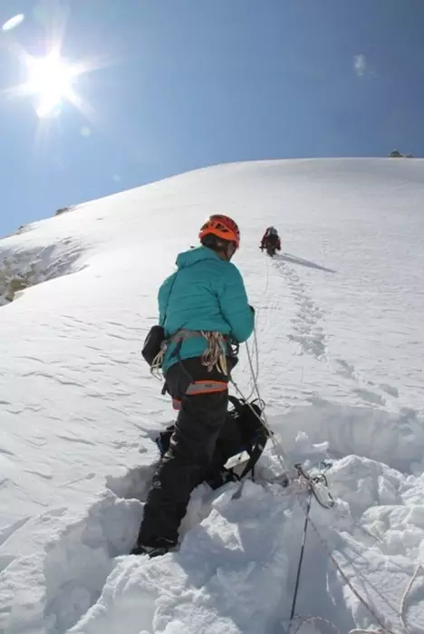 "Всю ночь шел снег, его выпало около 10 сантиметров. Видимость с утра была нулевая. В таких условиях работать на склоне нельзя. Но мы все равно использовали день с пользой. Вернулись в передовой лагерь, взяли по 300-400 метров веревки и отнесли к первому лагерю, где мы ее "законсервировали", упаковали, чтобы ветром не снесло, и спустились в базовый лагерь", - рассказал Жумаев.