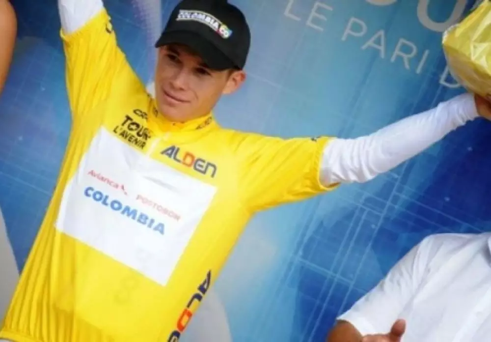 Победителя Тура де л'Авенир-2014 колумбийского гонщика Мигеля Анхеля Лопеса заставили надеть платье во время обеда в испанском Кальпе. 20-летний Лопес, которого называют Superman Lopez, произнес в странном наряде тост, подняв бокал с водой. В правом углу на фотографии запечатлен Луис Леон Санчес, также облаченный в нарядное платье.