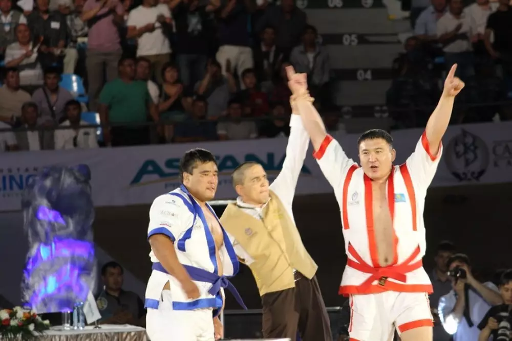 В Астане на республиканском велотреке "Сарыарка" завершился традиционный турнир по казакша курес "Казахстан Барысы" на призы Президента Казахстана Нурсултана Назарбаева, сообщает Vesti.kz. В решающей схватке встречались борец из Восточно-Казахстанской области Айбек Нугымаров и Ержан Шынкеев из Карагандинской области. Победителем встречи стал Нугымаров. Стоит отметить, что Шынкеев пробился в финал победив чемпиона 2012 года Бейбита Ыстыбаева из Жамбылской области. Примечательно, что сначала судьи назвали Ыстыбаева победителем схватки, но потом, спустя некоторое время, решение изменили. В итоге Ыстыбаев отказался выйти из юрты для поединка за третье место и "бронзу" турнира отдали Жуманазару Ерсултанову из Южно-Казахстанской области.