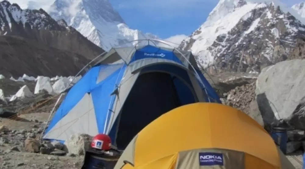 Участники экспедиции на К2 из-за мокрого снега остались в палатке, сообщается в блоге казахстанского альпиниста Максута Жумаева.