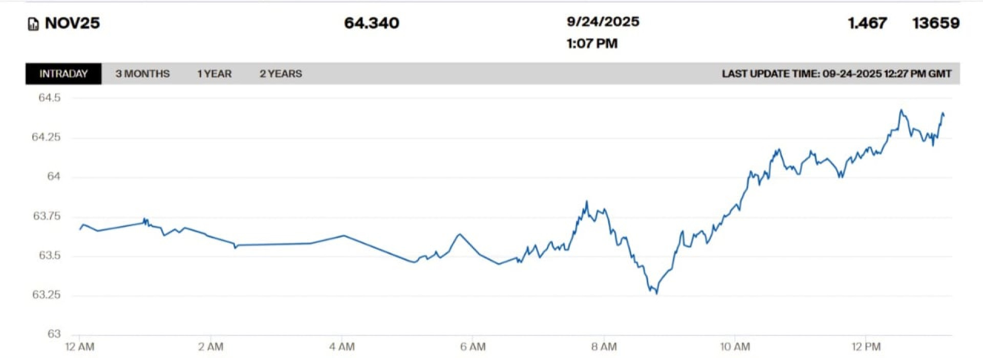 Стоимость ноябрьских фьючерсов на нефть марки WTI увеличилась на 1,47 процента - до 64,34 доллара за баррель.