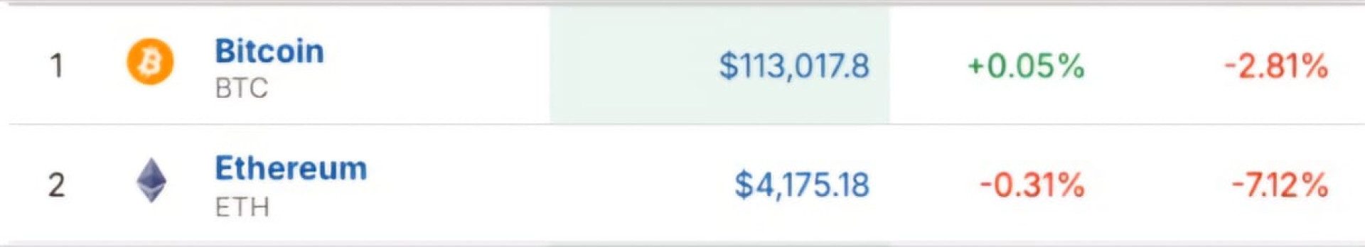 Курс Bitcoin (BTC) немного подорожал на 0,05 процента, тогда как Ethereum (ETH) подешевел на 0,31 процента до 4 175,18 доллара за одну монету на фоне колебаний на рынке и укрепления доллара США.