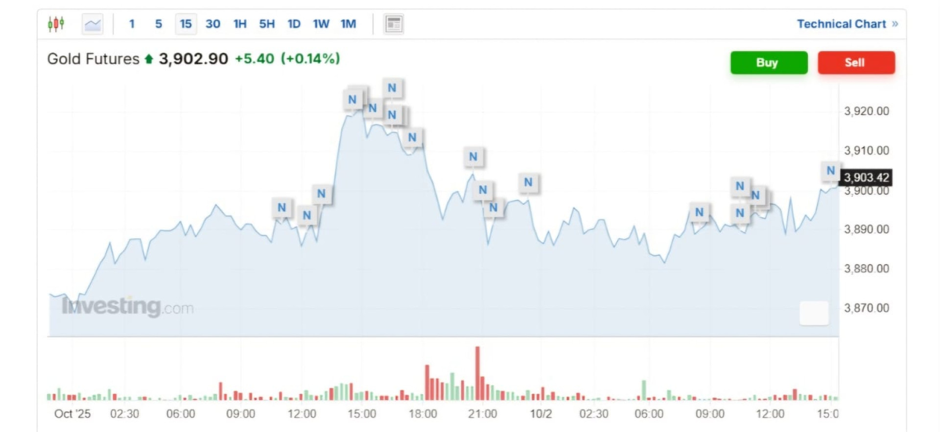 Фьючерс на золото повысился на 0,14 процента - до 3 902,90 доллара за унцию.