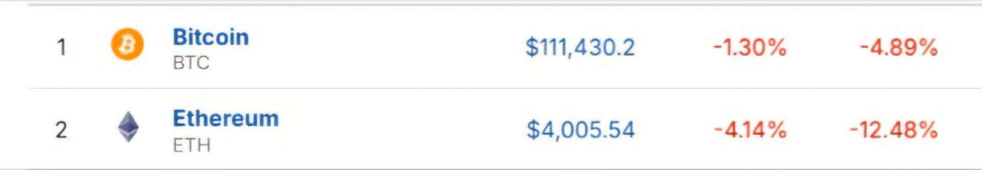 Курс Bitcoin (BTC) подешевел на 1,30 процента, Ethereum (ETH) - на 4,14 процента до 4 005,54 доллара за одну монету.