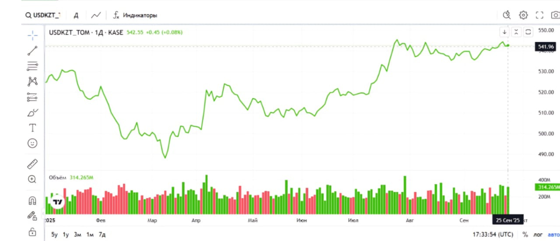 Отметим, что официальный курс Национального банка на 25 сентября составляет 542,8 тенге за доллар.