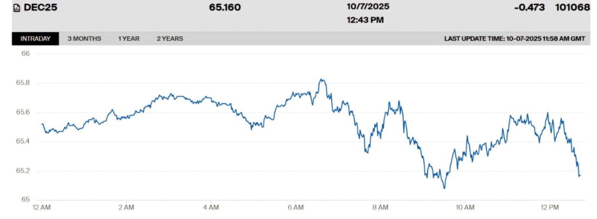 Цена декабрьских фьючерсов на нефть марки Brent на лондонской бирже ICE понизилась на 0,47 процента - до 65,16 доллара за баррель.