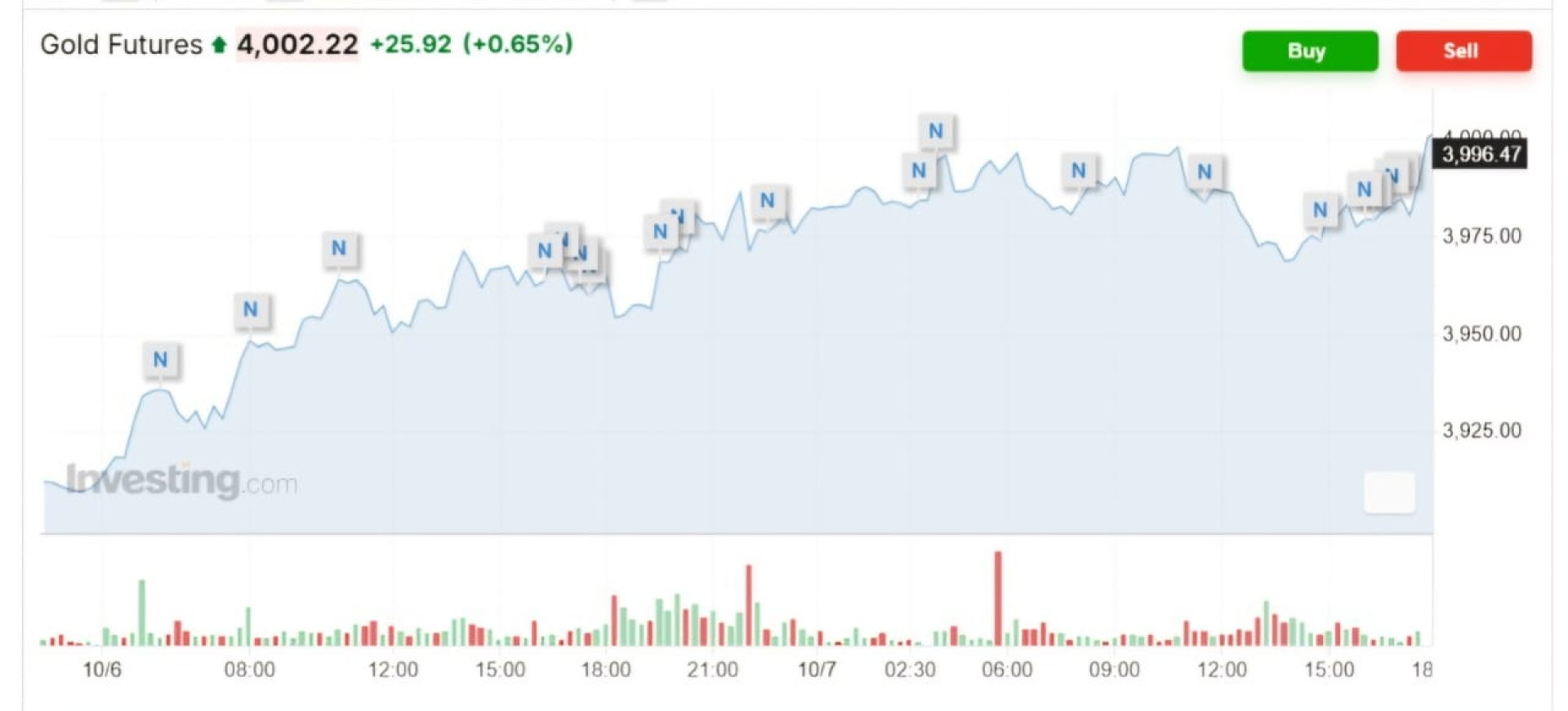 Золото обновило рекордный максимум, поднявшись выше 4 000 долларов за унцию на фоне продолжающейся политической и экономической неопределённости в мире, включая шатдаун правительства США.