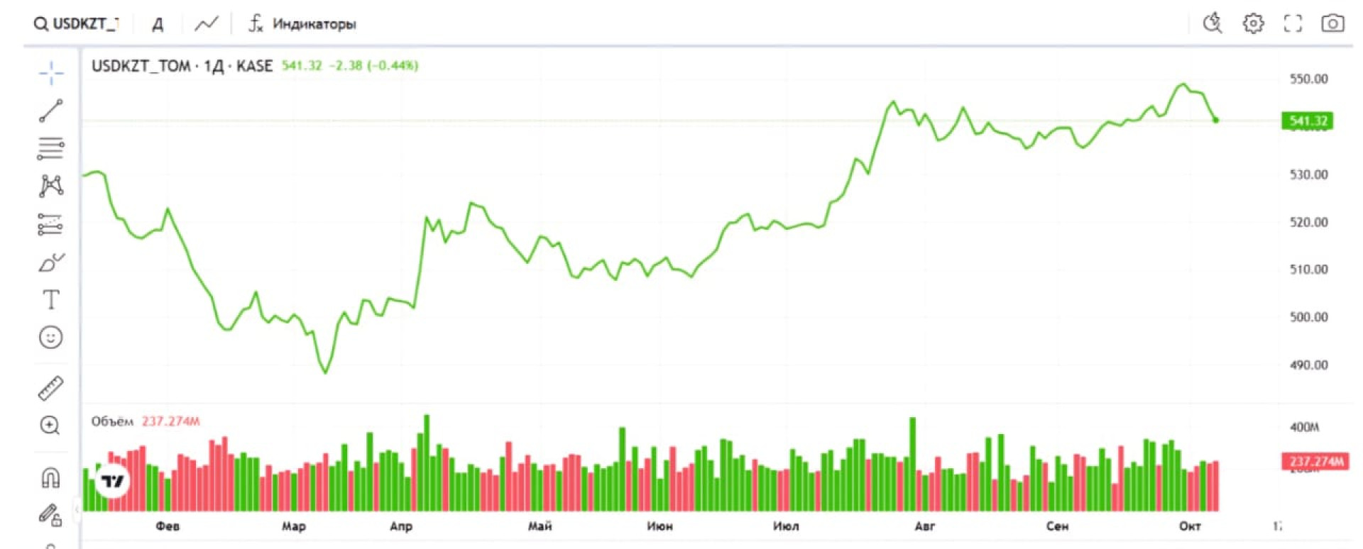 Отметим, что официальный курс Национального банка на 7 октября составляет 545,67 тенге за доллар.
