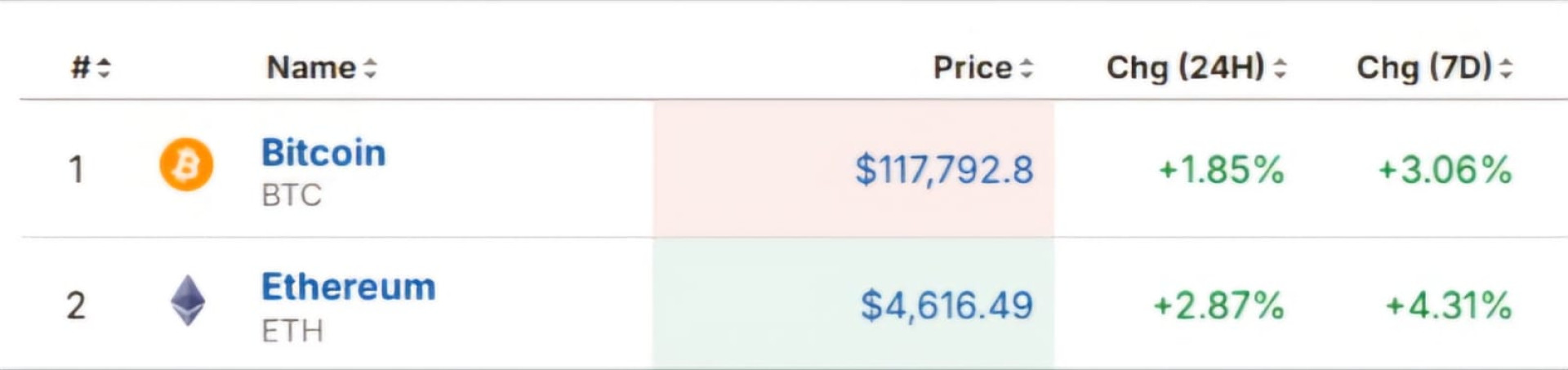 Курс Bitcoin (BTC) подорожал на 1,85 процента, Ethereum (ETH) - на 2,87 процента до 4 616,49 доллара за одну монету, потому что снижение ставки ФРС на 0,25 процента создало ожидания более мягкой монетарной политики, что усилило интерес к рискованным активам и стимулировало приток инвестиций в криптовалюты.
