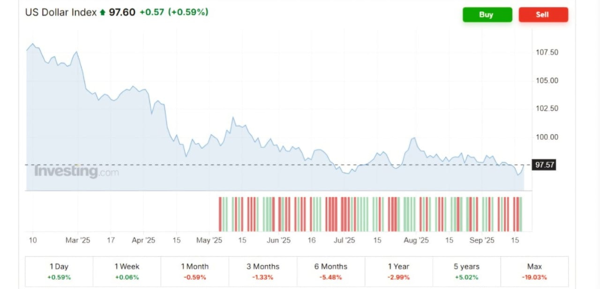 Накануне ФРС уже снизила ставку, но доллар всё равно вырос, потому что регулятор дал понять, что дальше действовать будет осторожно и не спешит с новыми смягчениями, а доходность гособлигаций США осталась высокой, что сделало доллар более привлекательным.