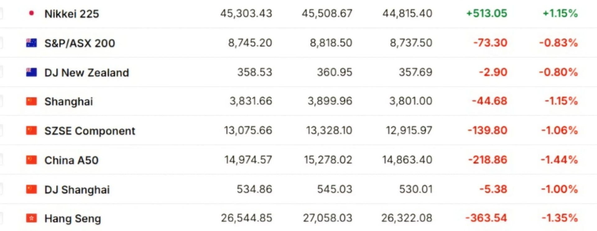 Азиатские рынки в целом закрылись в красной зоне, потому что инвесторы насторожены после осторожных сигналов со стороны ФРС. Хотя была снижена ставка, регулятор дал понять, что последующие шаги будут аккуратными, что снижает уверенность в сильной поддержке экономики.