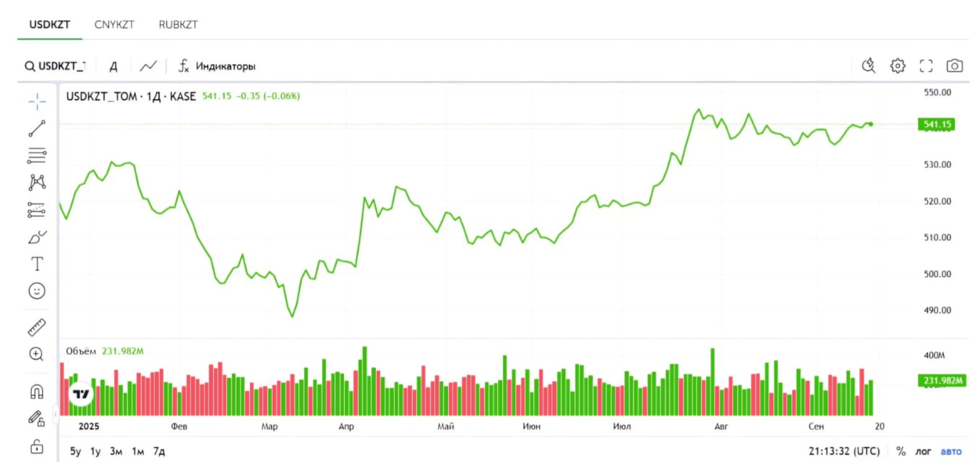Отметим, что официальный курс Национального банка на 18 сентября составляет 541,34 тенге за доллар.
