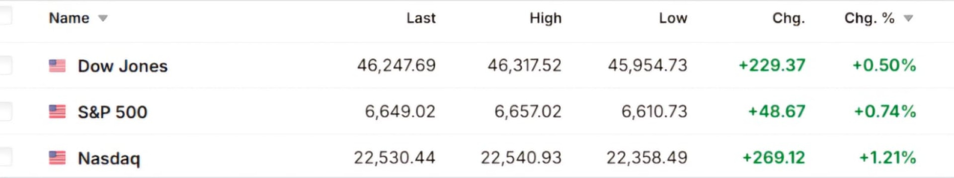 Индекс Dow Jones повысился на 0,50 процента, S&P 500 - на 0,74 процента, NASDAQ - на 1,21 процента.