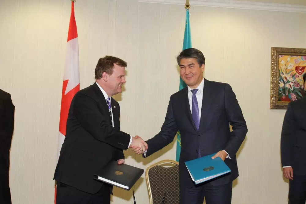 Документ подписали вице-премьер-министр индустрии и новых технологий Казахстана Асет Исекешев и министр иностранных дел Канады Джон Бэрд.