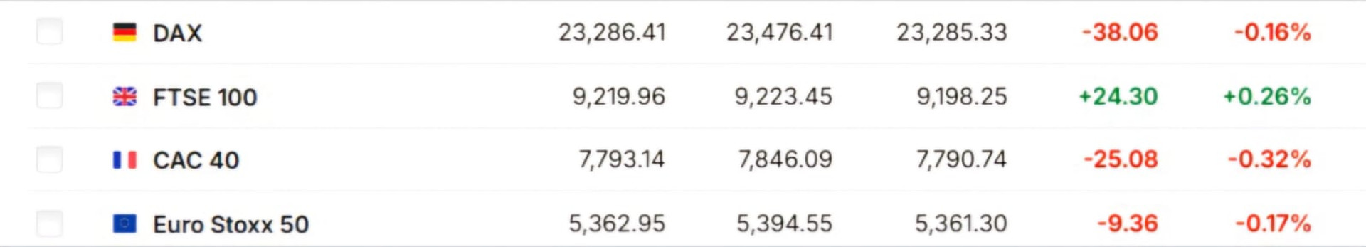 Европейские рынки в целом показали отрицательную динамику. Это связано с ожиданием решения ФРС по процентным ставкам, неопределённостью в отношении её дальнейшего курса, а также давлением на экспортно-ориентированные компании из-за сильного евро и возможных помех со стороны тарифов и геополитики. При этом инфляция в Еврозоне сохранилась на том же уровне.