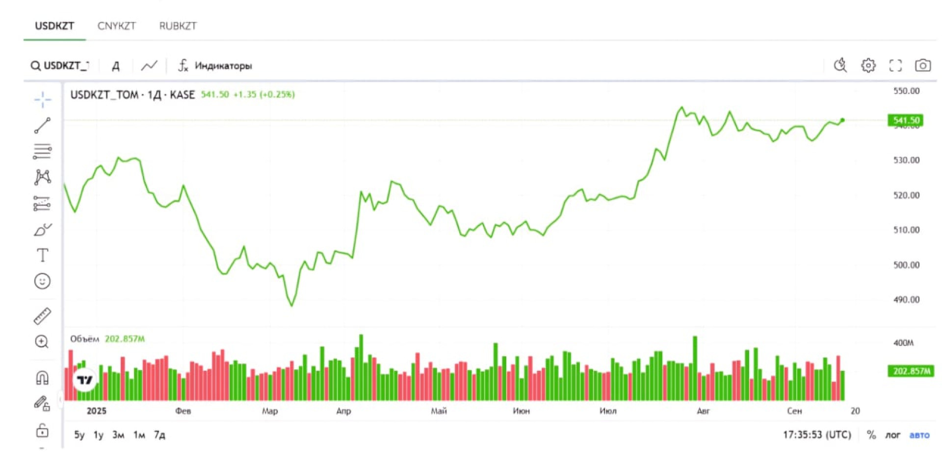 Отметим, что официальный курс Национального банка на 17 сентября составляет 539,54 тенге за доллар.
