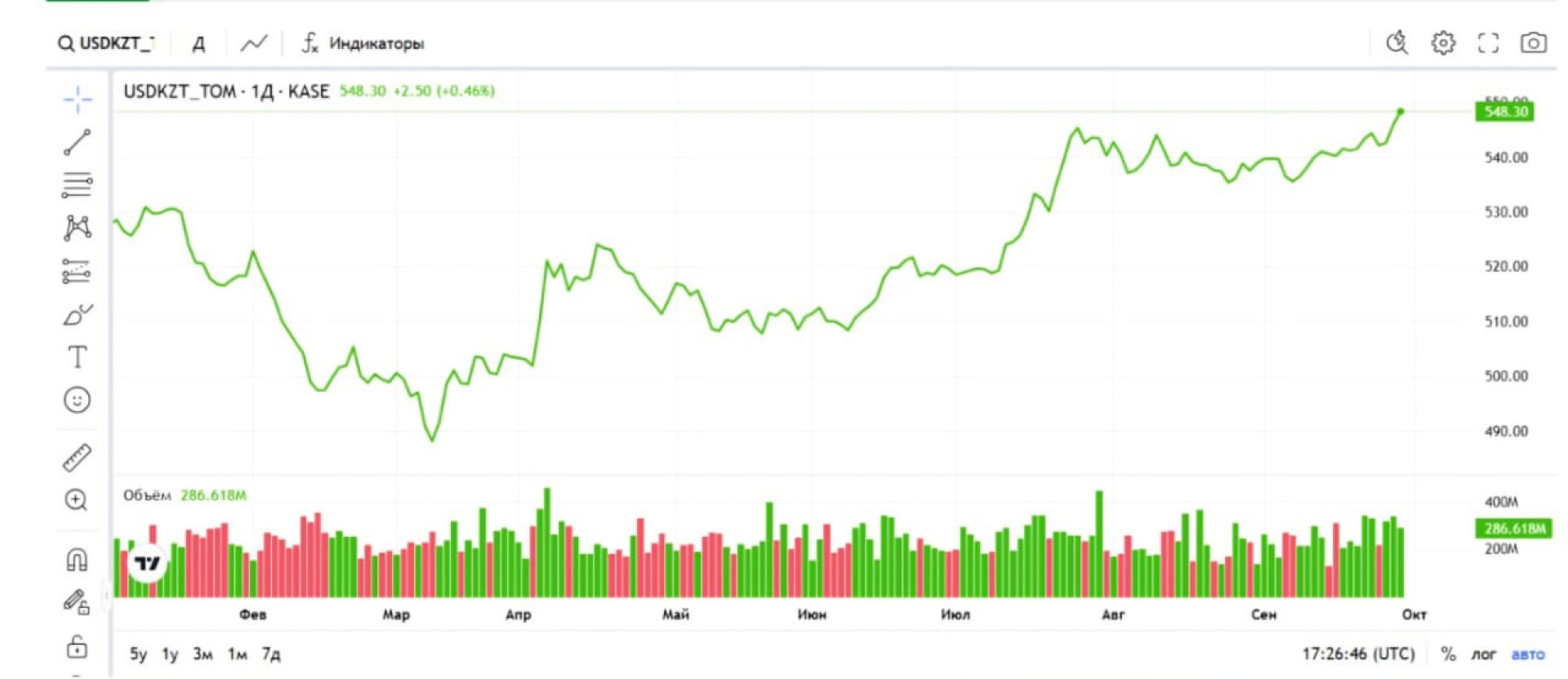 Отметим, что официальный курс Национального банка на 29 сентября составляет 544,26 тенге за доллар.