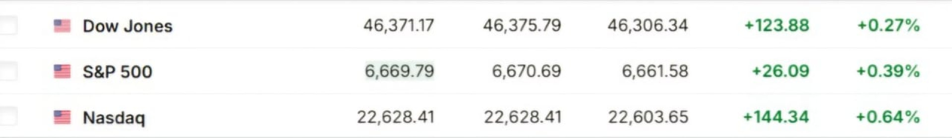 Американские рынки тоже открылись в зеленой зоне. Поддержку индексам оказали оптимизм инвесторов на фоне данных о стабильной экономике США и надежд на отсутствие кризиса в связи с возможной приостановкой работы правительства.