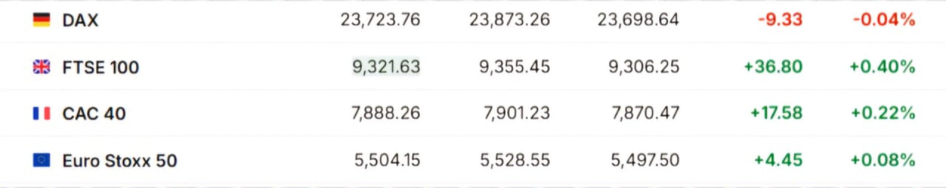 Рост поддерживают положительные корпоративные отчёты и стабильная макроэкономическая статистика по еврозоне, в то время как небольшое снижение DAX связано с осторожностью инвесторов из-за замедления экономического роста в Германии и внешней неопределенности.