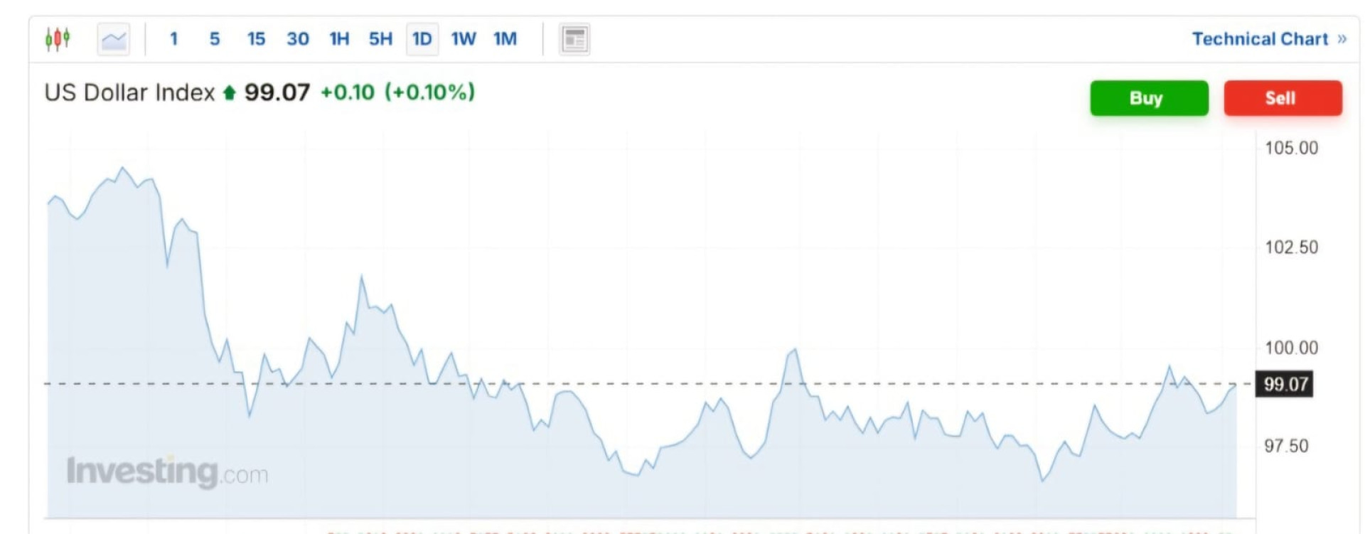 Индекс доллара США (U.S. Dollar Index, DXY, курс доллара по отношению к корзине основных мировых валют: евро, иена, фунт, канадский доллар, шведская крона, швейцарский франк) укрепился на 0,10 процента на фоне возвращения части инвесторов к американской валюте как к безопасному активу. Также слабые данные по инфляции в Великобритании ослабили фунт, что усилило относительную силу доллара.