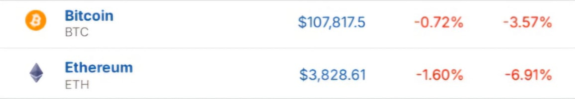 Курс Bitcoin (BTC) подешевел на 0,72 процента, Ethereum (ETH) - на 1,60 процента до 3 828,61 доллара за одну монету из-за снижения интереса инвесторов к рисковым активам на фоне растущей неопределённости в мировой экономике и ростом торговых и геополитических рисков.