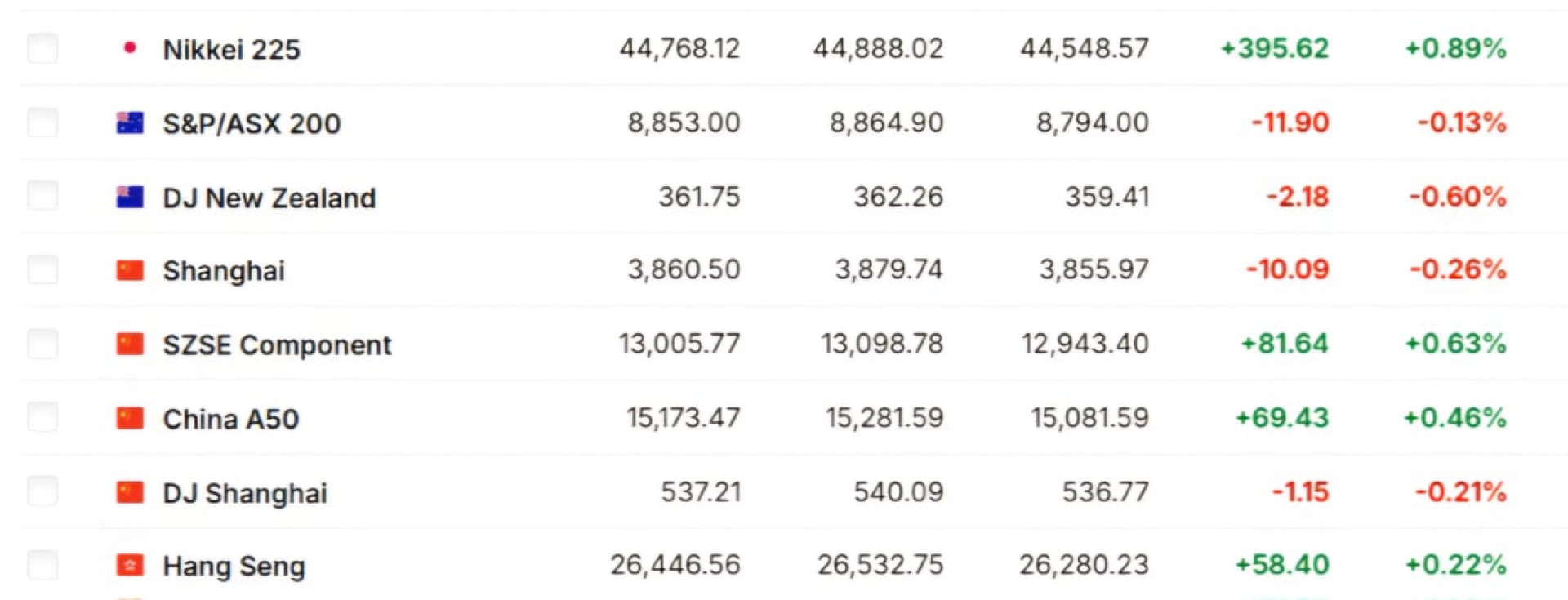 В Японии индекс Nikkei 225 поднялся на 0,89 процента в основном благодаря внешнему оптимизму (ожиданиям снижения ставок в США, сильным технологическим активам) и тому, что внутренние факторы Японии (слабая иена, экспорт) выглядят привлекательно для инвесторов.