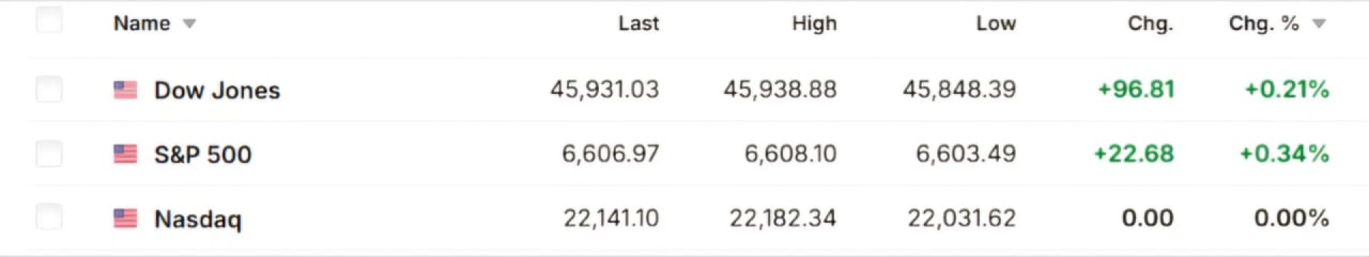 Американские рынки открылись в зеленой зоне главным образом из-за ожиданий, что ФРС США на ближайшем заседании снизит процентную ставку — инвесторы уже практически уверены, что снижение произойдёт. Кроме того, позитив на отдельных технологических акциях, включая Tesla, и смягчение торговых/регуляторных рисков (например, связанные с Китаем) подыграли Nasdaq сильнее остальных.