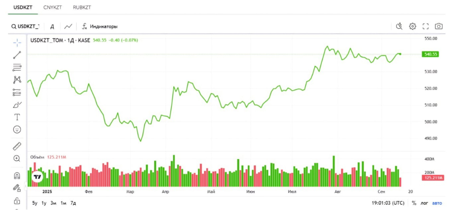 Отметим, что официальный курс Национального банка на 15 сентября составляет 540,84 тенге за доллар.