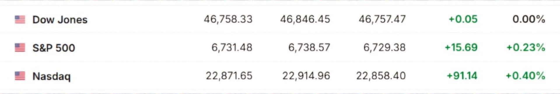 Американские рынки в целом открылись в зеленой зоне. Несмотря на продолжающееся частичное закрытие правительства США, инвесторы сохраняют оптимизм, ориентируясь на перспективы технологического сектора и ожидания экономических изменений.