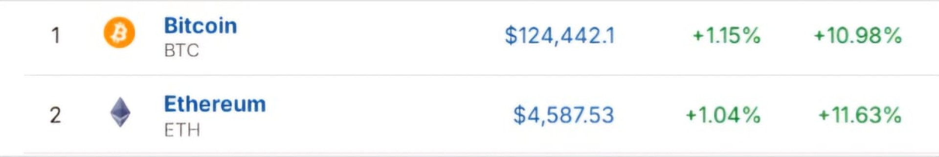 Курс Bitcoin (BTC) подорожал на 1,15 процента, Ethereum (ETH) - на 1,04 процента до 4 587,53 доллара за одну монету из-за растущего интереса инвесторов к криптовалютам как к безопасным активам, притока средств в криптофонды и ожиданий снижения процентных ставок в США.