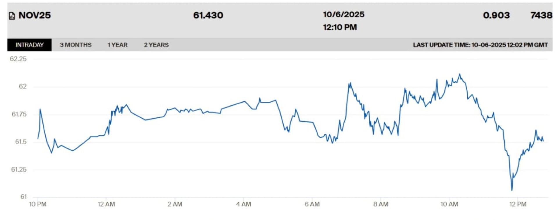 Стоимость ноябрьских фьючерсов на нефть марки WTI увеличилась на 0,9 процента - до 61,43 доллара за баррель.