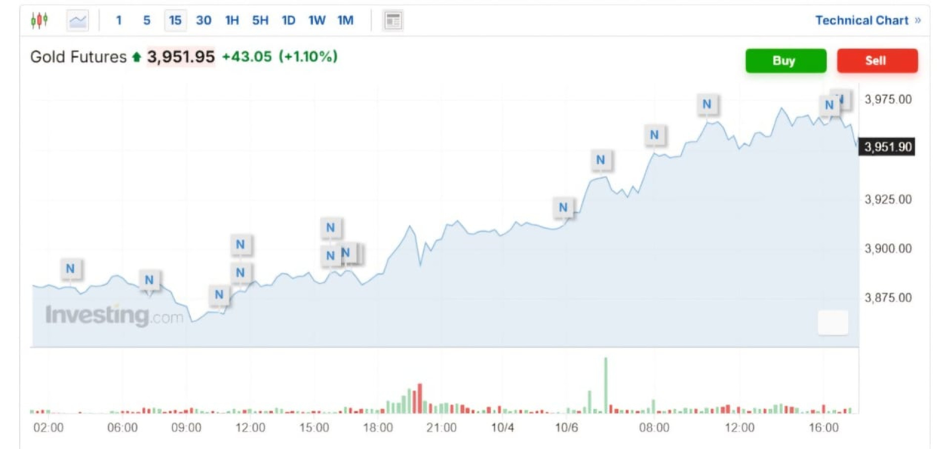 Золото обновило рекорд, поднявшись выше 3 950 долларов за унцию на фоне повышенного спроса на безопасные активы из-за частичного закрытия правительства США, ожиданий снижения ставок и экономической неопределенности.