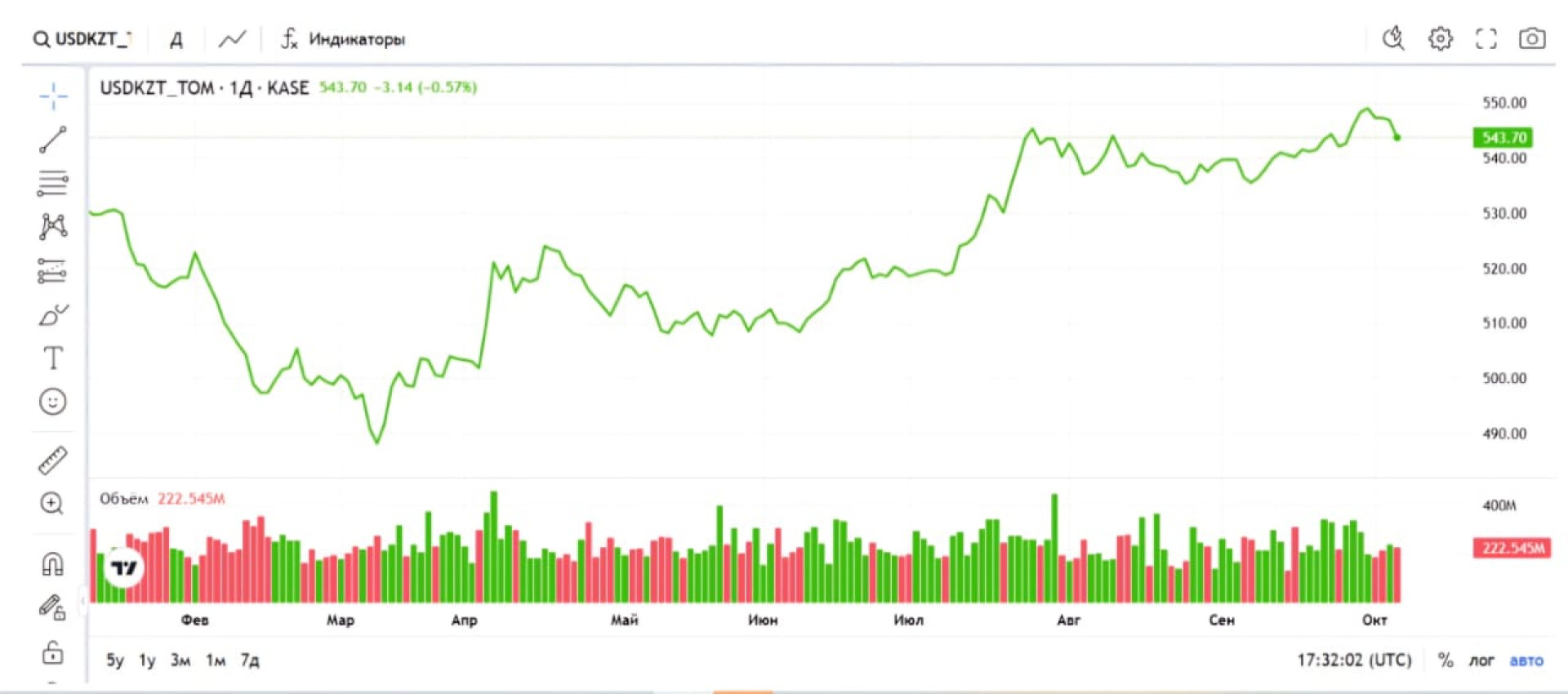 Отметим, что официальный курс Национального банка на 6 октября составляет 547,57 тенге за доллар.