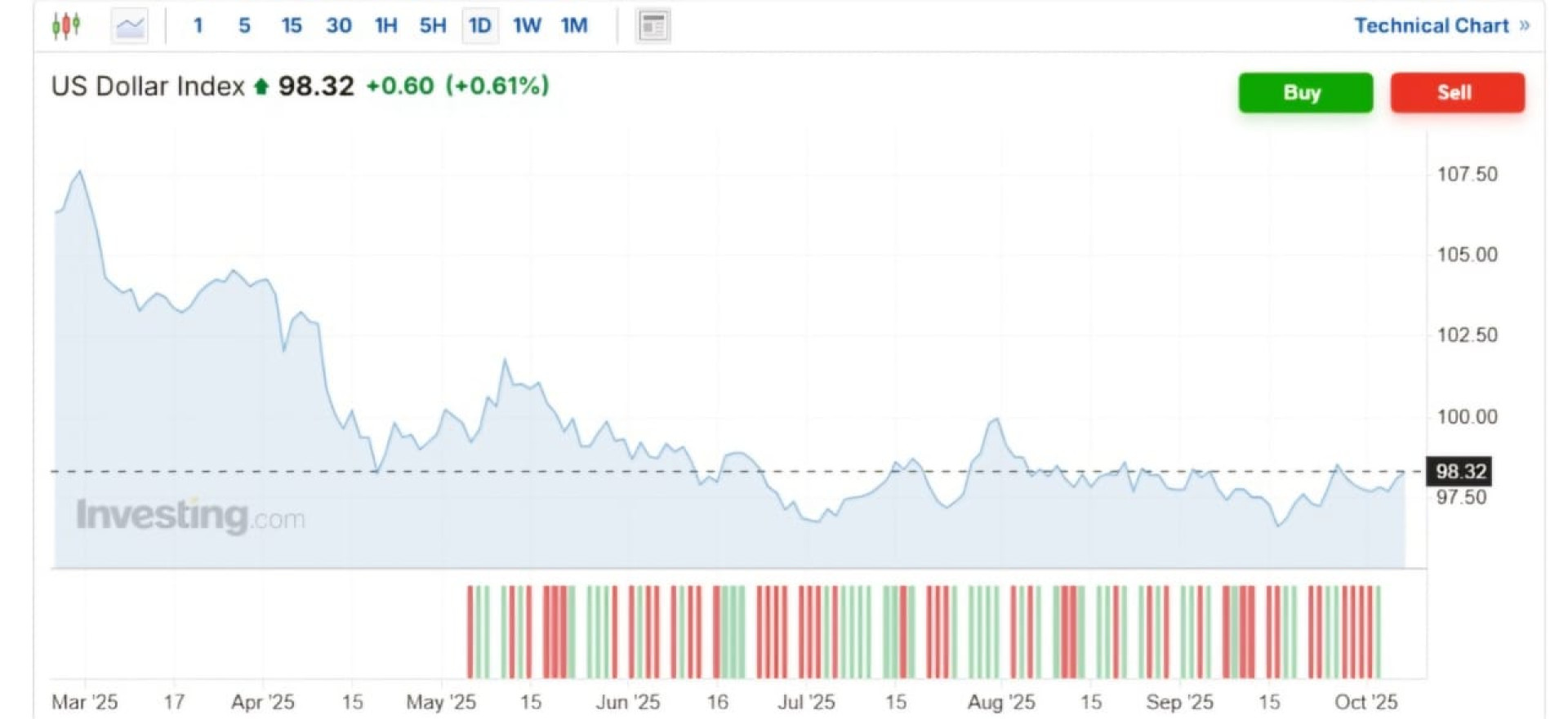 На укрепление американской валюты повлияло повышение цен на нефть, а также неопределённость в США из-за продолжающегося шатдауна правительства и ожидание снижения процентных ставок ФРС.