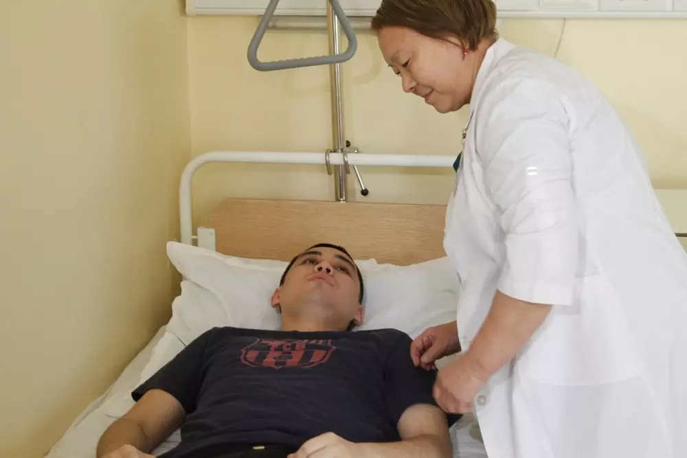 Проблемы со здоровьем у 24-летнего жителя Уральска начались после ДТП - в мае 2014 года его сбила машина. Дамир Касымбаев получил черепно-мозговую травму, он пробыл четыре дня в коме и потом еще месяц лежал в больнице. Его здоровье начало резко ухудшаться - мужчина стал страдать от частых и обильных носовых кровотечений, пульсирующего ощущения и шума в голове. Пять раз он ложился в больницу, причем два раза попадал в отделение реанимации из-за обильной кровопотери - до 2-2,5 литра. Местные врачи не смогли помочь Касымбаеву, и он по совету специалистов приехал в Алматы.