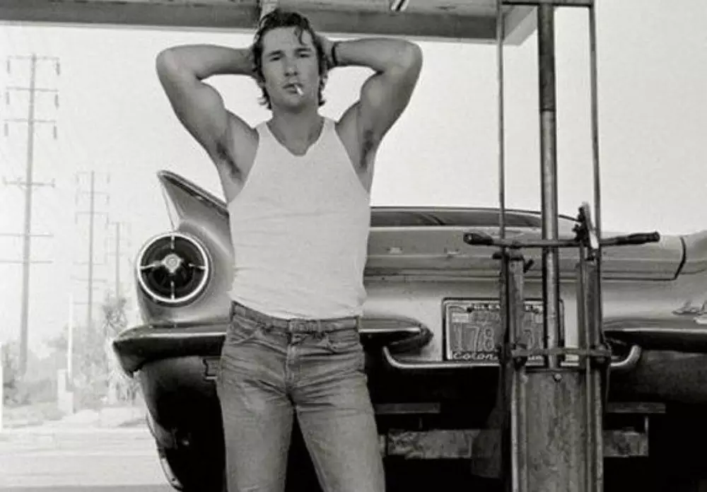 Ричард Гир, 1978 год. Фотограф Херб Ритц сделал этот портрет своего близкого друга, начинающего и никому неизвестного тогда актера - Ричарда Гира. Снимок был сделан в Калифорнии, когда у их автомобиля прокололось колесо, и они заехали в придорожный сервис с целью его поменять.