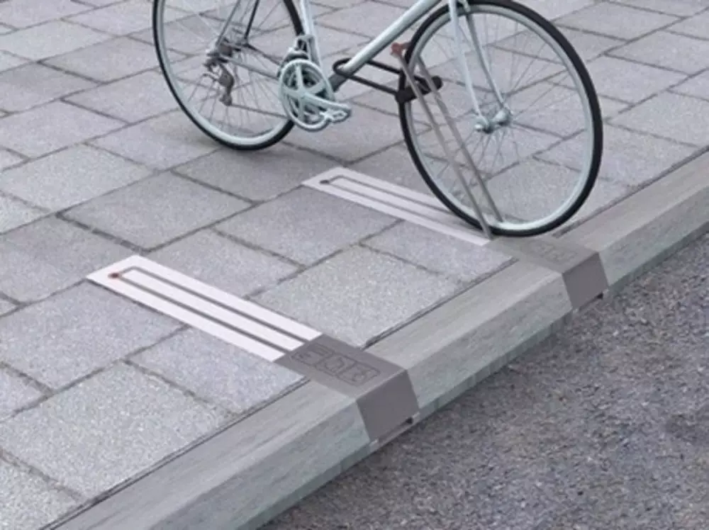 Велопарковка со складывающимися и уходящими в тротуар подставками для велосипедов.