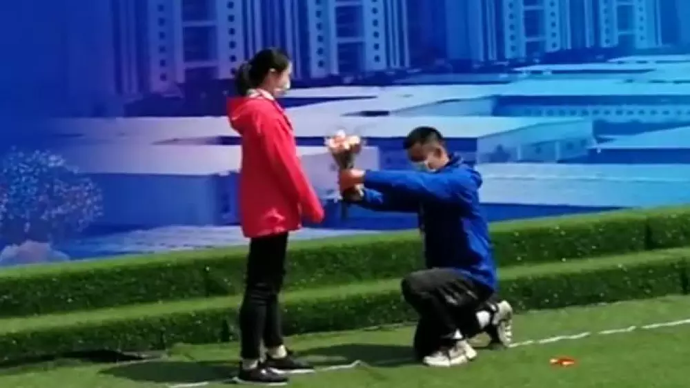 Когда в Китае победили вирус и спецбольницы стали закрываться, молодой человек отважился на глазах у всех коллег сделать возлюбленной предложение руки и сердца. Он встал на одно колено с букетом цветов и произнес заветную фразу: "Ты выйдешь за меня замуж?"