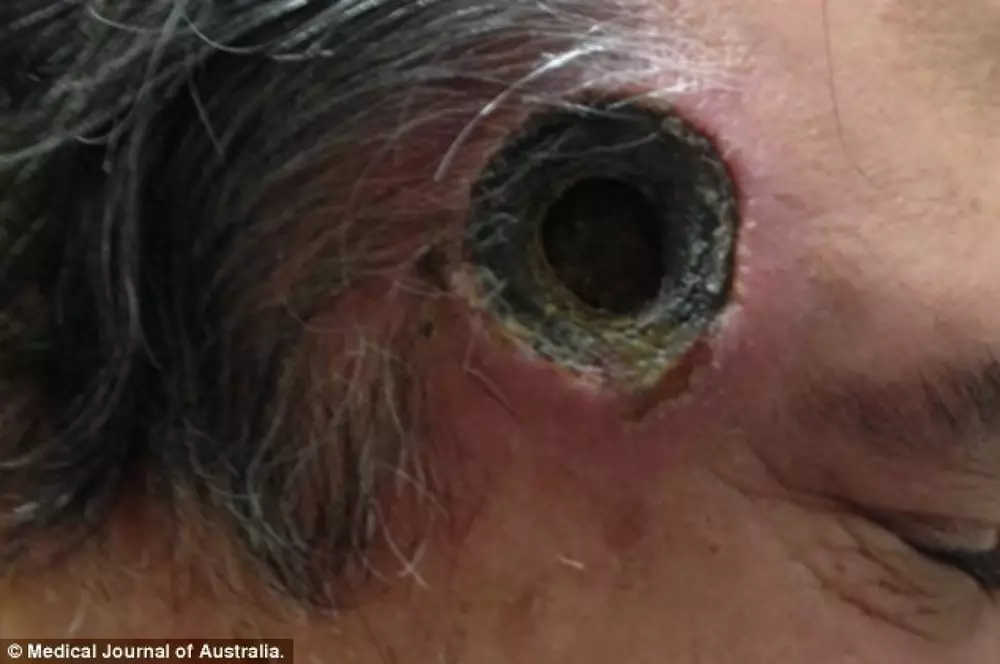 Врачи одной из больниц в австралийском городе Брисбен были потрясены, когда увидели пришедшего к ним пациента. В районе правого виска у него зияла черная дыра диаметром 2,5 сантиметра. 55-летний мужчина рассказал, что четыре месяца подряд пользовался бальзамом, купленным у адептов нетрадиционной медицины. По его словам, мазь была произведена на основе наркотических средств. В народе ее называют "чертежный бальзам". Препарат содержит, в частности, ядовитый алкалоид сангвинарин и хлорид цинка.