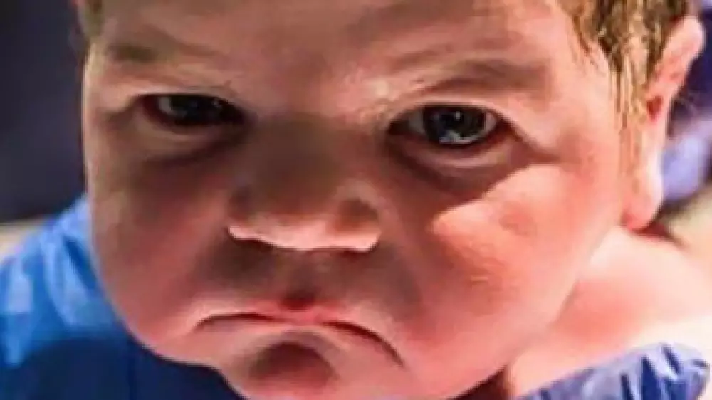 #5 "Моему сыну всего неделя, но морщины на лбу говорят о том, что он 80-летний дед, который засыпает в кресле за просмотром телевизора"