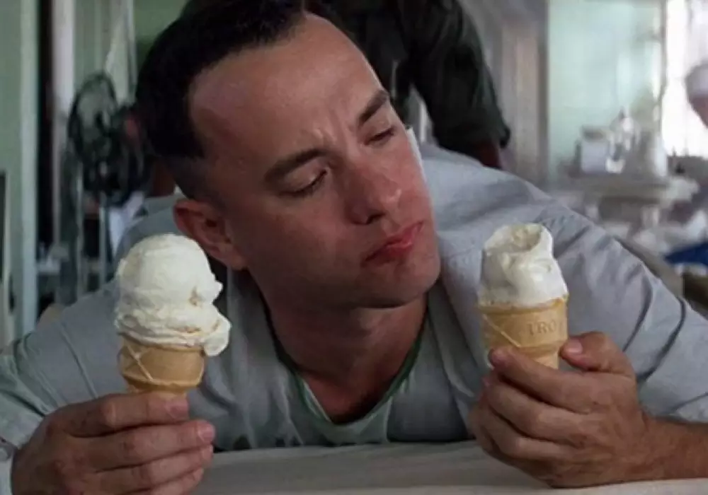 Как известно, история Форреста Гампа начинается с детства героя, и за период фильма мы видим его ребенком, подростком и взрослым мужчиной. В каждой сцене, открывающей новый этап в жизни Форреста, он одет в голубую клетчатую рубашку. В рубашку той же расцветки одет и сын героя в финальной сцене фильма.